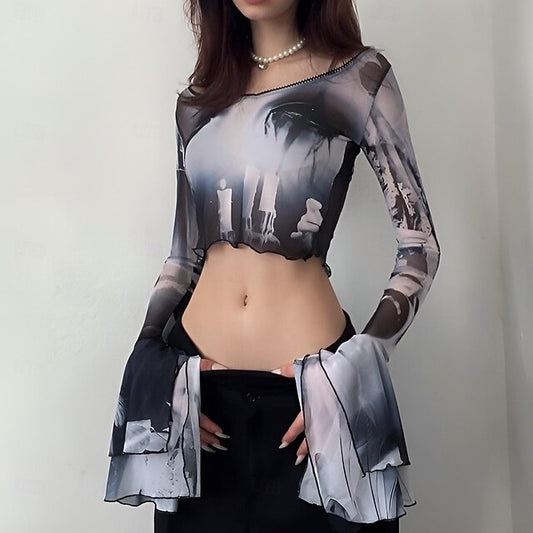 Punk & Gothic 1970s Groovy Crop Top Disco Mesh Psychedelic