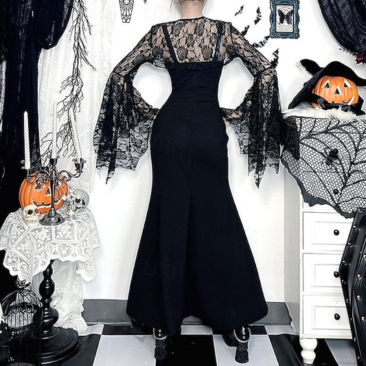Gothic Maxi Dress Shrug Top Bell Sleeve Witch Morticia Addams