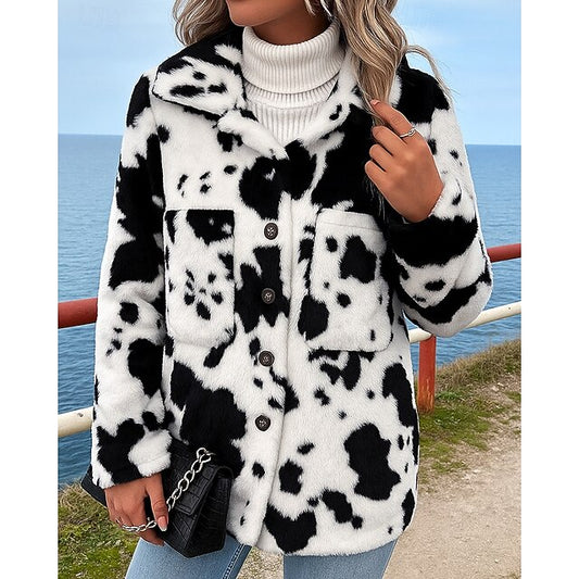 Women's Fleece Jacket Winter Coat Buttons Long Sleeve Top