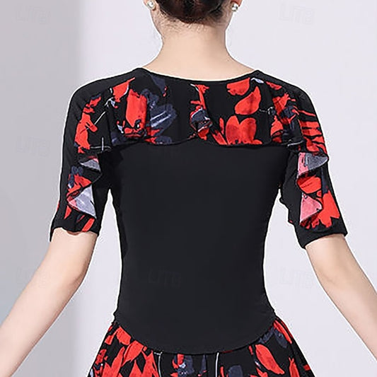 Latin Dance Top Printing Ruffle Splicing Women's