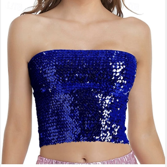 Retro Vintage 1980s Shiny Metallic Tube Top Disco Sequins Solid