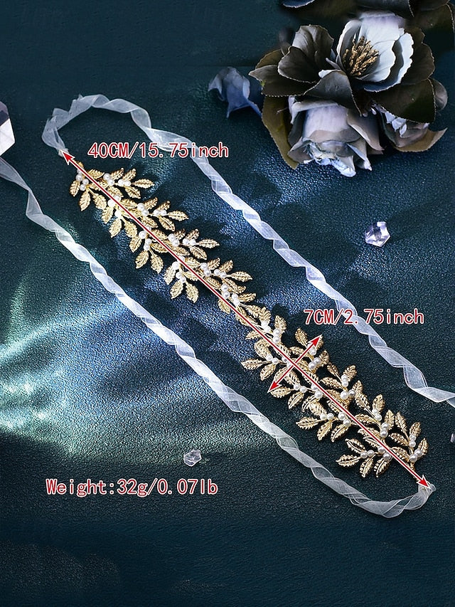 Elegant Gold Leaf Bridal Belt with Pearl Accents –