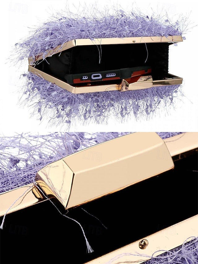 Women's Chic Feathered Evening Clutch with Chain Strap,