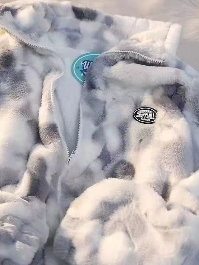 Gender: Women's, Outerwear Type: Fleece Jacket, Teddy Coat, Faux Fur Coat, Occasion: Weekend, Going out, Casual, Street, Vacation, Daily Wear, Season: Winter, Fall, Function: Comfortable, Warm, Fabric: Polyester, Faux Fur, Style: Casual, Outerwear Length: Regular, Pattern: Abstract, Tie Dye, Design: Zipper, Neckline: Stand Collar, Sleeve Length: Long Sleeve, Fit Type: Regular Fit, Loose Fit, Elasticity: Inelastic, Micro-elastic, Look After Me: Machine wash,