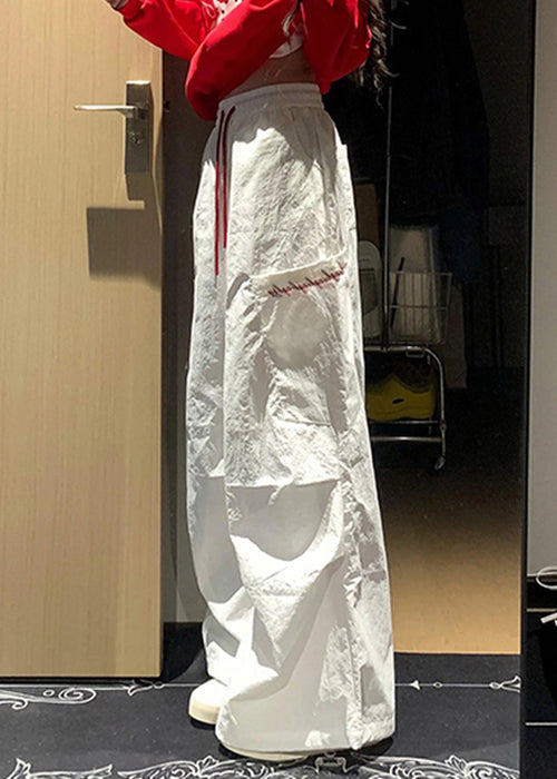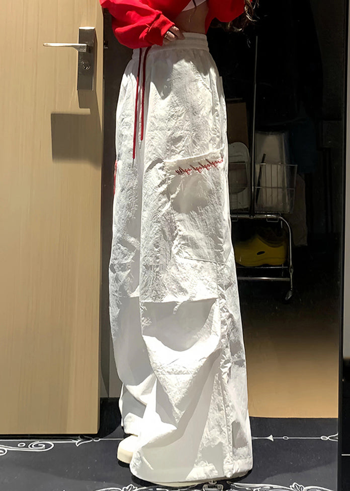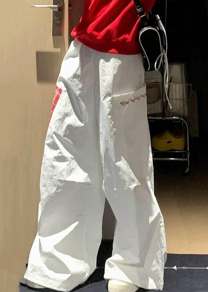 French White Plaid Pockets Patchwork Cotton Pants Fall