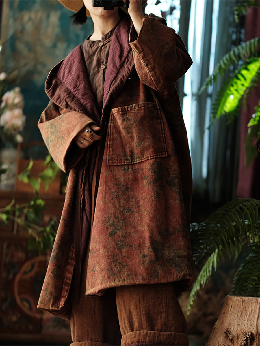Damen Wintermantel mit Vintage-Blumenmuster und Kapuze aus Baumwolle AX1019