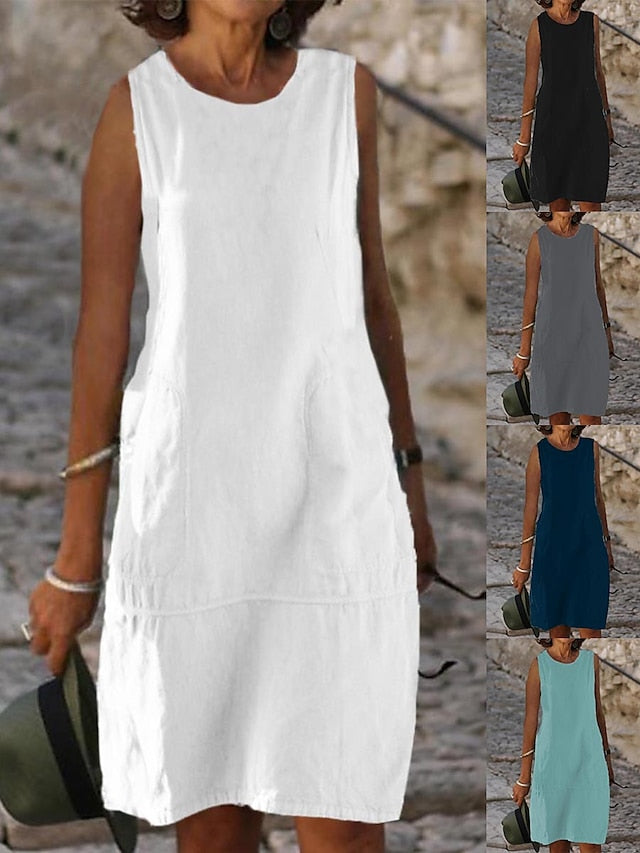 Dresses Type: Cotton Linen Dresses, White Dress, Sundress, Fabric: Linen, Polyester, Gender: Women's, Design: Pocket, Occasion: Vacation, Daily, Style: Classic, Casual, Print Type: non-printing, Fit Type: Loose Fit, Dress Length Type: Midi Dress, Neckline: U Neck, Sleeve Length: Sleeveless, Elasticity: Micro-elastic, Look After Me: Machine wash, Pattern: Plain, Season: Spring, Summer,