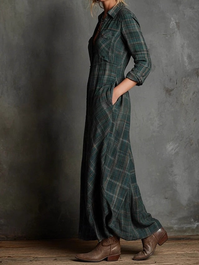 Dresses Type: Fit And Flare Dress, Sheath Dress, Work Dresses, Fabric: 100% Polyester, Gender: Women's, Design: Buttons, Occasion: Party, Daily, Birthday, Office, Style: Vacation, Party, Casual, Formal, Boho, Fit Type: Regular Fit, Dress Length Type: Maxi Dress, Neckline: Lapel, Sleeve Length: Long Sleeve, Elasticity: Micro-elastic, Pattern: Graphic, Geometric, Plaid,