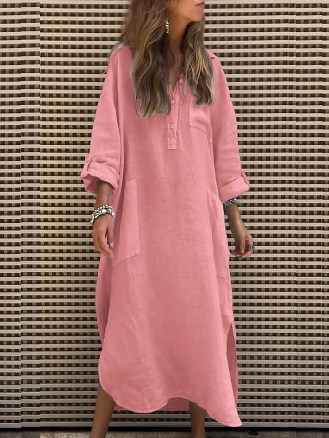 Dresses Type: Shirt Dress, Fabric: Polyester, Gender: Women's, Design: Pocket, Buttons, Occasion: Vacation, Holiday, Going out, Outdoor, Style: Classic, Modern, Fit Type: Regular Fit, Dress Length Type: Midi Dress, Neckline: V Neck, Sleeve Length: Long Sleeve, Elasticity: Micro-elastic, Look After Me: Machine wash, Pattern: Plain, Season: Summer,