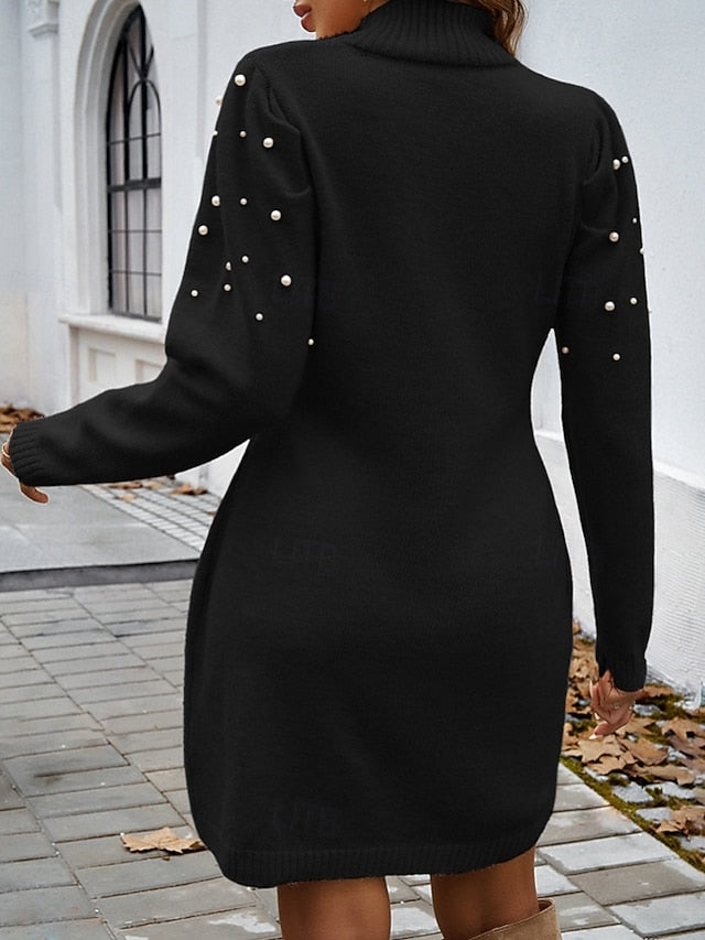 Dresses Type: Sweater Dress, Fabric: Polyester, Gender: Women's, Design: Knit, Glitter, Occasion: Going out, Daily, Style: Modern, Elegant, Fit Type: Regular Fit, Dress Length Type: Mini Dress, Neckline: Turtleneck, Sleeve Length: Long Sleeve, Elasticity: Stretchy, Look After Me: Hand wash, Machine wash, Pattern: Plain, Season: Winter, Fall,