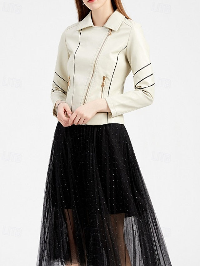Gender: Women's, Outerwear Type: Faux Leather Jacket, Occasion: Vacation, Going out, Weekend, Season: Fall, Spring, Function: Comfortable, Fabric: Faux Leather, Style: Casual, Outerwear Length: Regular, Pattern: Color Block, Design: Zipper, Pocket, Neckline: Turndown, Sleeve Length: Long Sleeve, Fit Type: Regular Fit, Elasticity: Micro-elastic, Look After Me: Machine wash,