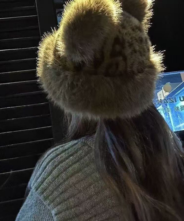 2025 New Leopard Print Thickened Warm Fuzzy Fur Hat RB045
