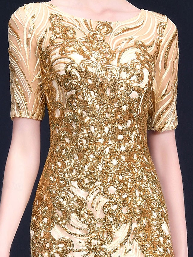 Occasion: Wedding Guest, Birthday, Wedding Party, Formal Evening, Engagement Party, Style: Elegant, Party, Silhouette: Dress, Hemline / Train: Floor Length, Neckline: Crew Neck, Fabric: Polyester, Closure: Zipper UP, Sleeve Length: Half Sleeve, Embellishment: Sequin, Fully Lined: Yes, Built-In Bra: No, Boning: No,