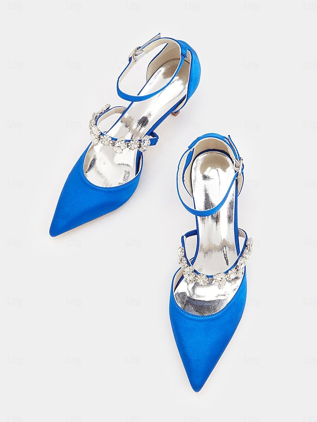 Satin with Heels Black - Women's Rhinestone Embellishments