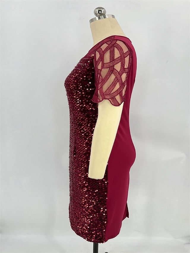 Occasion: Formal Evening, Formal, Birthday, Wedding Guest, Style: Elegant, Silhouette: Dress, Hemline / Train: Tea Length, Neckline: Crew Neck, Fabric: Lace, Closure: Zipper UP, Sleeve Length: Short Sleeve, Embellishment: Sequin, Fully Lined: Yes, Built-In Bra: No, Boning: No,