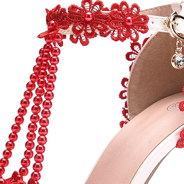 Women's Wedding Shoes Bridal Shoes Lace High Heel Pointed