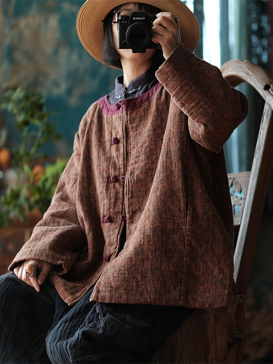 Manteau court rembourré ethnique 100 % coton pour femme AI1061