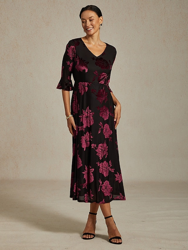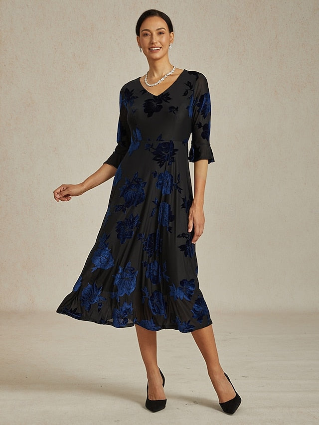 Dresses Type: Cocktail Dress, Velvet Dress, A Line Dress, Fabric: Velvet, Spandex, Gender: Women's, Design: Jacquard, Occasion: Wedding Guest, Cocktail Party, Date, Evening Party, Style: Birthday, Elegant, Cocktail, Print Type: non-printing, Fit Type: Regular Fit, Dress Length Type: Midi Dress, Neckline: V Neck, Sleeve Length: Half Sleeve, Elasticity: High Elasticity, Look After Me: Hand wash, Pattern: Floral, Season: Winter, Fall, Spring,