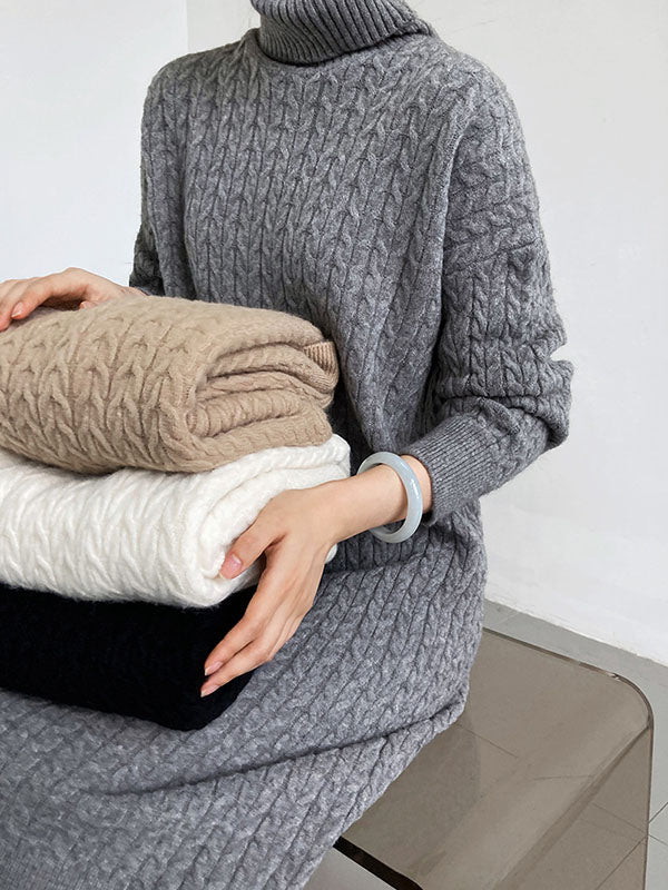 Casual Grey High-Neck Long Sleeve Twist Knit Dress AN1053