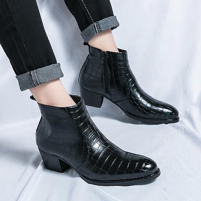 Crocodile Brown Pattern Faux Leather Boots - Men's Ankle