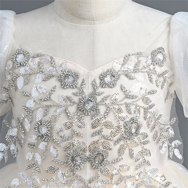 Gender: Girls', Age Group: Kids, Style: Sweet, Elegant, Occasion: Special Occasion, Party, Performance, Wedding, Kids Apparel: Flower Girl Dress, Party Dress, Fabric: Polyester, Pattern: Solid Color, Sequin, Sleeve Length: Short Sleeve, Design: Mesh, Patchwork, Age: 4-12 Years, Season: Fall, Winter, Spring, Look After Me: Hand wash, Dresses Type: Swing Dress, Tulle Dress, Party Dress, Fit Type: Regular Fit, Dress Length (cm): Maxi, Neckline: Crew Neck,