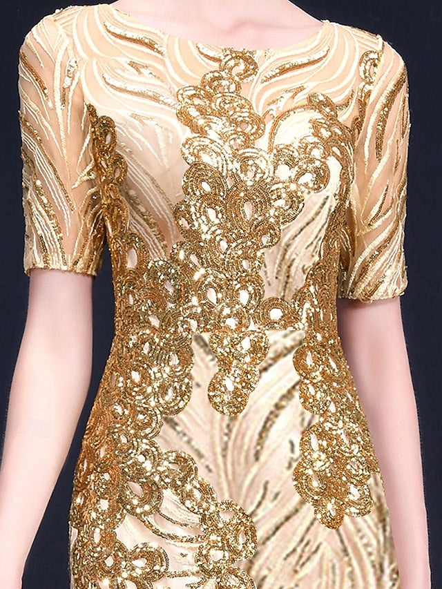 Occasion: Wedding Guest, Birthday, Wedding Party, Formal Evening, Engagement Party, Style: Elegant, Party, Silhouette: Dress, Hemline / Train: Floor Length, Neckline: Crew Neck, Closure: Zipper UP, Sleeve Length: Half Sleeve, Embellishment: Sequin, Fully Lined: Yes,
