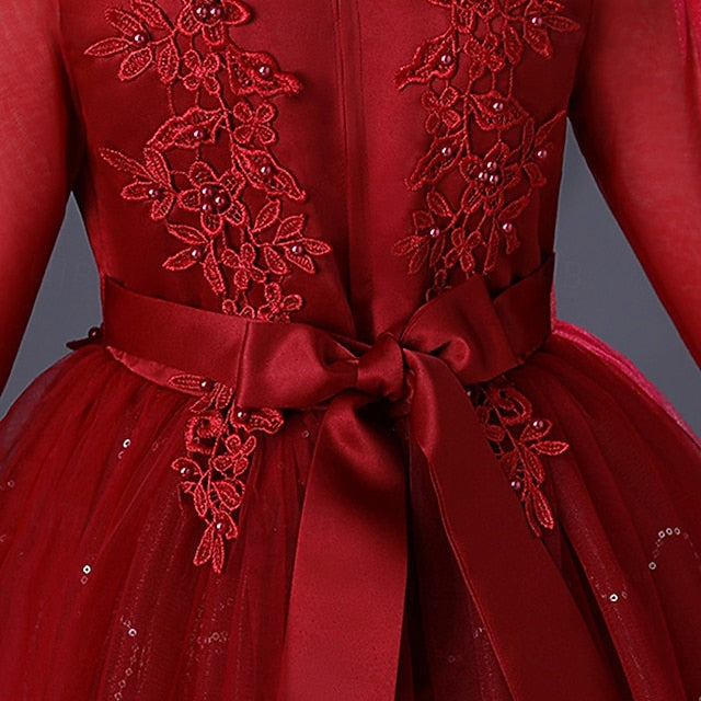 Gender: Girls', Kid's, Style: Elegant, Beautiful, Occasion: Performance, Wedding, Party, Birthday, Kids Apparel: Princess Dress, Fabric: Polyester, Pattern: Solid Color, Sleeve Length: Long Sleeve, Design: Mesh, Age: 4 years+, Season: Summer, Spring, Look After Me: Wet and Dry Cleaning, Washable, Length [Dress] (cm): 4-5 Years(120cm):80;5-6 Years(130cm):90;7-8 Years(140cm):98;9-10 Years(150cm):105;11-12 Years(160cm):110, Fit Type: Regular Fit, Dress Length (cm): Maxi, Function: Comfort, Neckline: Crew Neck,