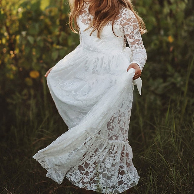 Gender: Girls', Age Group: Kids, Style: Cute, Princess, Occasion: Daily, Party, Wedding, Kids Apparel: Flower Girl Dress, Dress, Fabric: Cotton, Pattern: Solid Colored, Sleeve Length: Long Sleeve, Design: Lace, Mesh, Embroidered, Age: 3-12 Years, Season: Winter, Fall, Look After Me: Hand wash, Elasticity: Micro-elastic, Dresses Type: A Line Dress, Tulle Dress, Fit Type: Regular Fit, Dress Length (cm): Maxi,