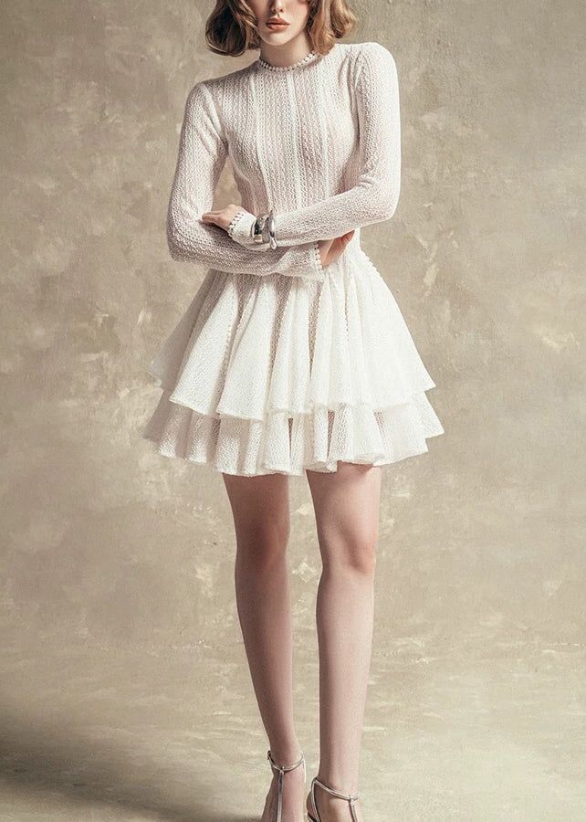 Indulge in the luxury of our French Slim Fit Black O Neck Wrinkled Lace Mid Dress, perfect for the sophisticated and exclusive woman looking to elevate her wardrobe this Spring.