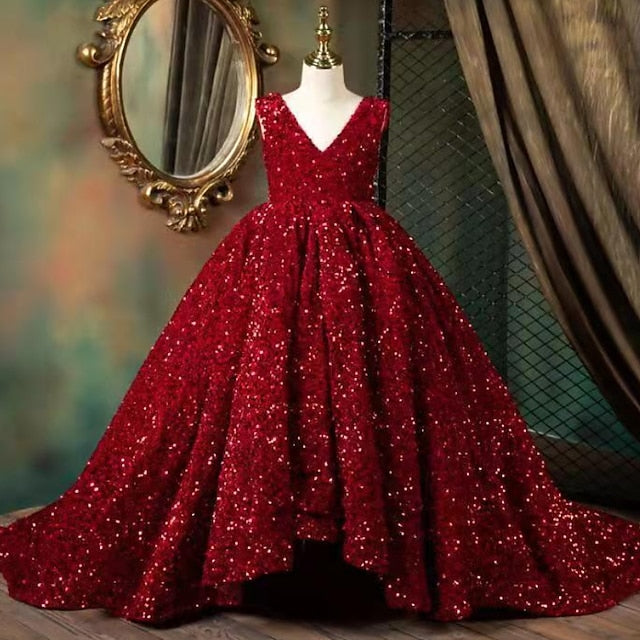 Gender: Girls', Age Group: Kids, Style: Cute, Princess, Occasion: Wedding, Party, Kids Apparel: Dress, Flower Girl Dress, Fabric: Polyester, Pattern: Solid Colored, Sleeve Length: Sleeveless, Design: Ruched, Sequins, Age: 3-10 Years, Season: Summer, Spring, Look After Me: Hand wash, Elasticity: Micro-elastic, Fit Type: Regular Fit, Dresses Type: A Line Dress, Dress Length (cm): Asymmetrical,