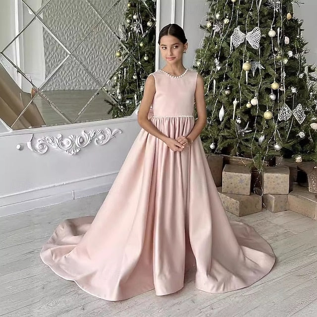 Gender: Girls', Style: Sweet, Princess, Occasion: Performance, Wedding, Party, Kids Apparel: First Communion Dress, Party Dress, Fabric: Mesh, Pattern: Solid Color, Sleeve Length: Sleeveless, Design: Mesh, Age: kids, Season: Summer, Winter, Fall, Spring, Look After Me: Hand wash, Elasticity: Inelastic, Dress Length (cm): Mid-Calf, Fit Type: Tailored Fit, Neckline: Crew Neck,