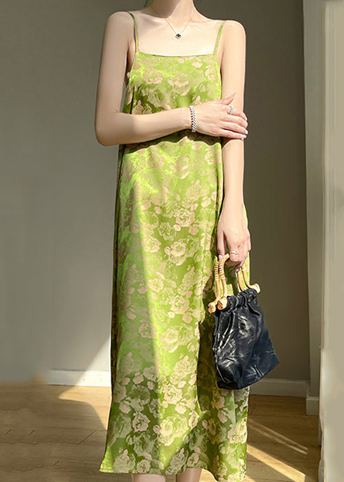 Green Pockets Silk Spaghetti Strap Dress Cold Shoulder Summer AB1004