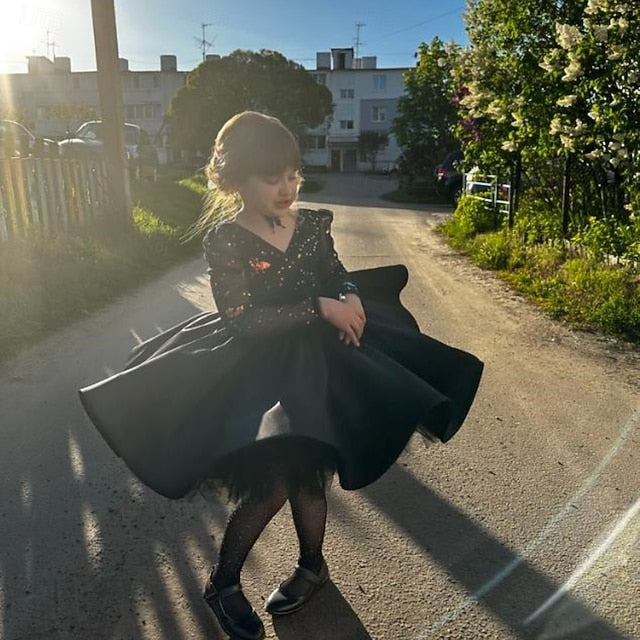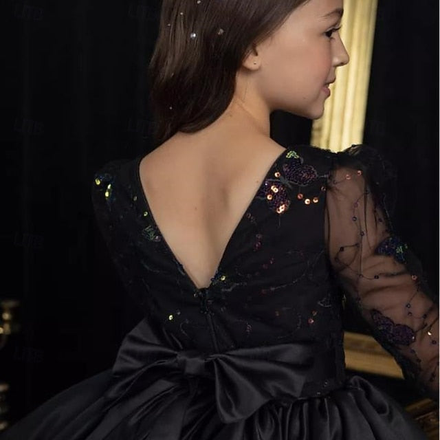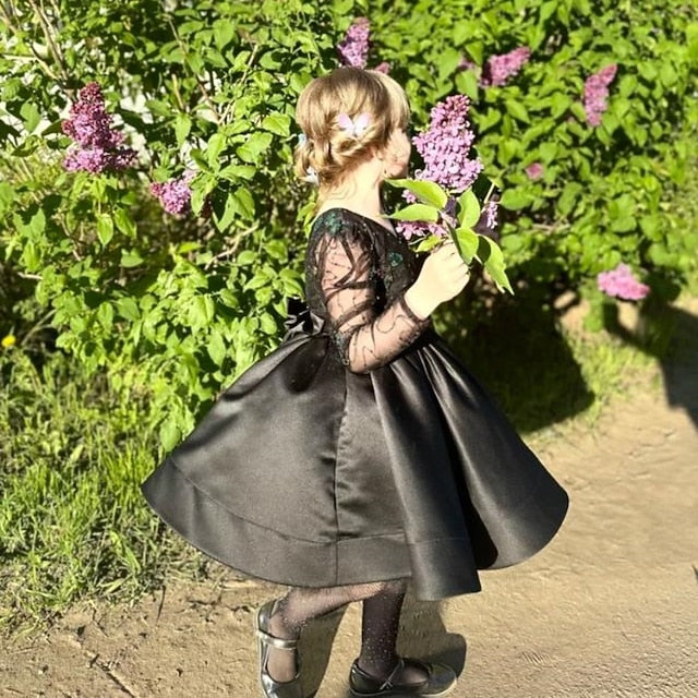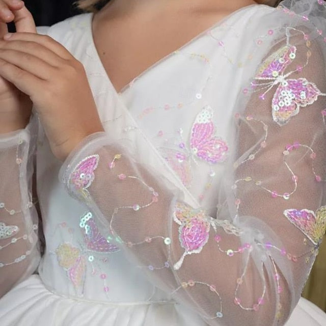 Gender: Girls', Age Group: Kids, Style: Sweet, Princess, Occasion: Performance, Wedding, Party, Kids Apparel: First Communion Dress, Flower Girl Dress, Party Dress, Fabric: Mesh, Pattern: Solid Color, Sleeve Length: Long Sleeve, Design: Mesh, Age: kids, Season: Summer, Winter, Fall, Spring, Look After Me: Hand wash, Elasticity: Inelastic, Dress Length (cm): Mid-Calf, Fit Type: Tailored Fit, Dresses Type: Sheath Dress, Tulle Dress, Neckline: Off Shoulder,