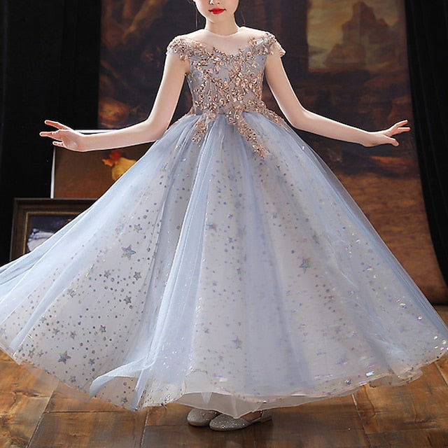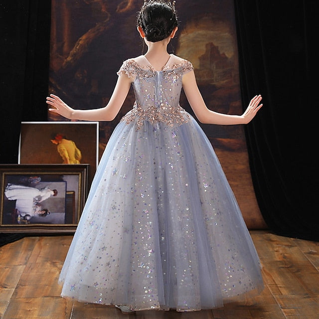 Gender: Girls', Age Group: Kids, Style: Sweet, Elegant, Occasion: Performance, Wedding, Party, Pegeant, Kids Apparel: Party Dress, Flower Girl Dress, Fabric: Cotton, Pattern: Sequin, Sleeve Length: Short Sleeve, Design: Sequins, Age: 3-12 Years, Season: Summer, Spring, Look After Me: Hand wash, Fit Type: Regular Fit, Dresses Type: A Line Dress, Party Dress, Flower Girl's Dress, Dress Length (cm): Maxi, Neckline: Crew Neck, Front page: FF,