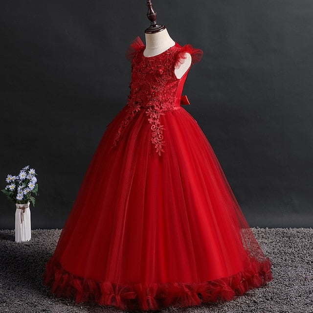 Gender: Girls', Age Group: Kids, Style: Cute, Princess, Occasion: Wedding, Party, Special Occasion, Kids Apparel: Flower Girl Dress, Dress, Fabric: Polyester, Pattern: Jacquard, Sleeve Length: Sleeveless, Design: Mesh, Age: 4-12 Years, Season: Summer, Winter, Fall, Spring, Look After Me: Hand wash, Festival: Children's Day, Dress Length (cm): Maxi, Dresses Type: Pink Princess Dress, Flower Girl's Dress,