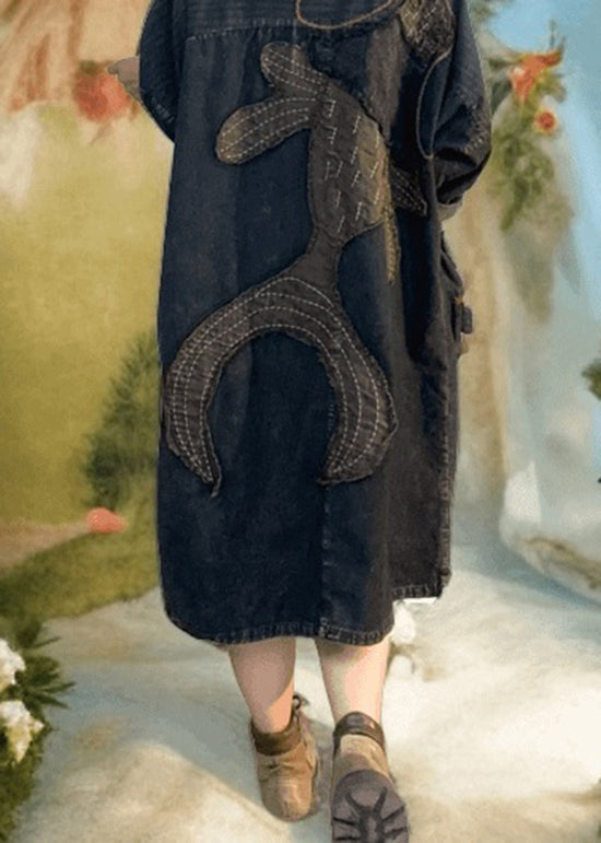 Introducing the new Spring RX005: a black applique patchwork denim hooded dress. Elevate your wardrobe with this exquisite piece, crafted with the finest attention to detail. Perfect for the fashion-forward woman who appreciates the art of combining various textures and styles.