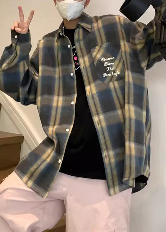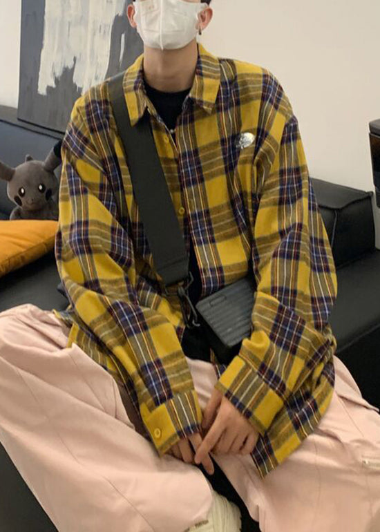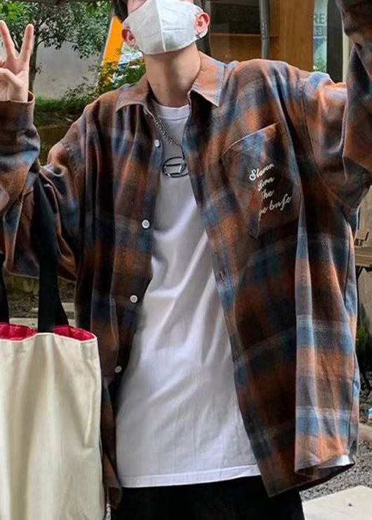 New Orange Peter Pan Collar Plaid Woolen Men Shirts Fall RO001