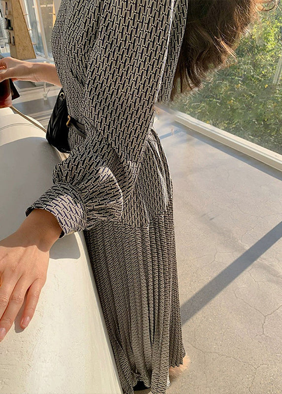 O-Neck Navy Fall Print Long Dresses High Cotton Italian Waist