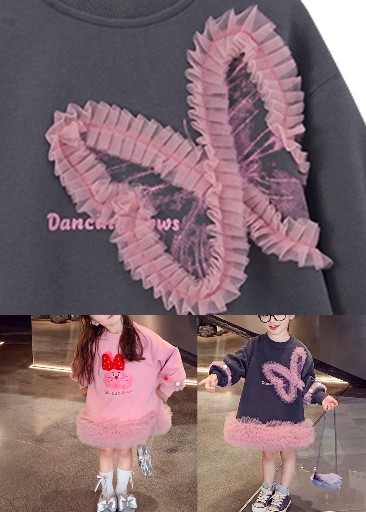 Pink Tulle Patchwork Tulle Kids Long Dresses Spring TG011