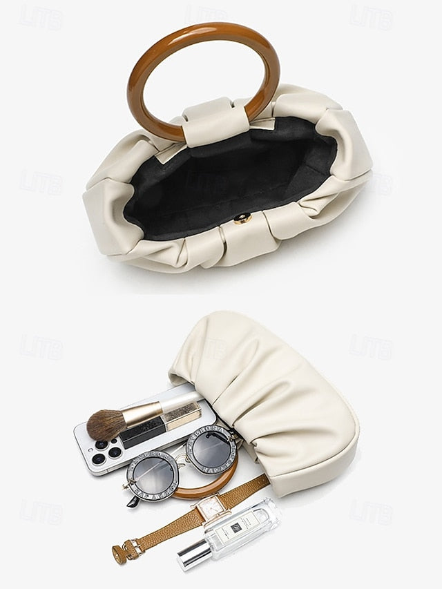 Gender: Women's, Type: Wristlet, Clutch Bags, Material: PU Leather, Embellishment: Wrinkles, Pattern: Solid Color, Occasion: Wedding Party, Casual Daily, Beach, Width (cm): 5.5, Height (cm): 13, Length (cm): 23, Function: Waterproof, Lightweight, Category: Clutch,