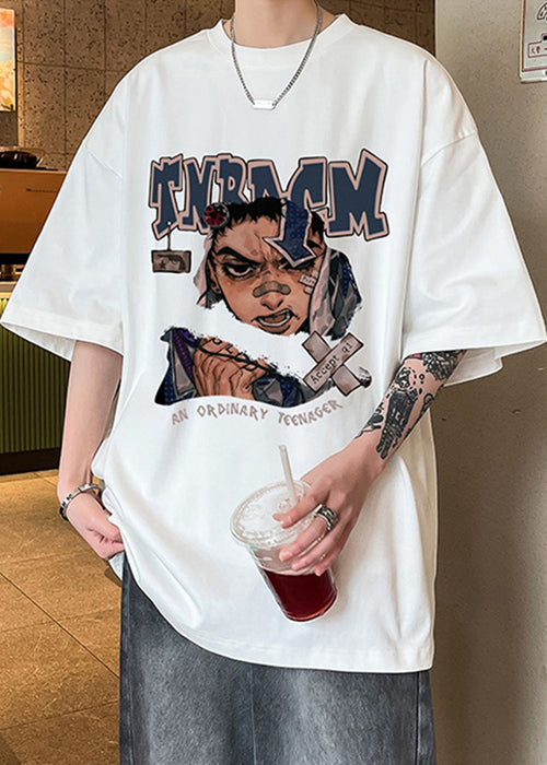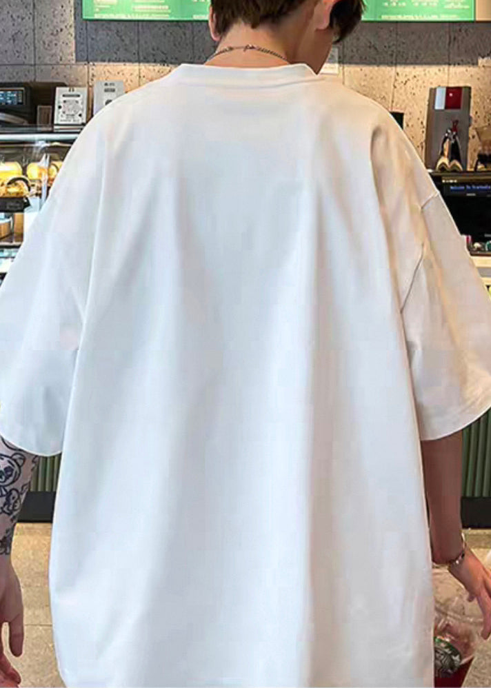 Print Half O Loose Sleeve Chocolate Shirt T Mens Neck Cotton