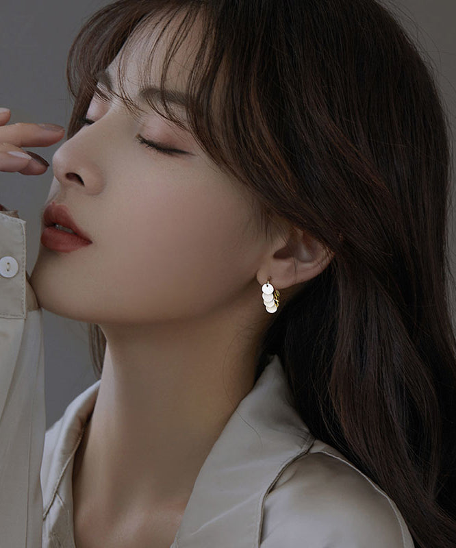 Brief Gold Sterling Silver Alloy Love Sequins Hoop Earrings