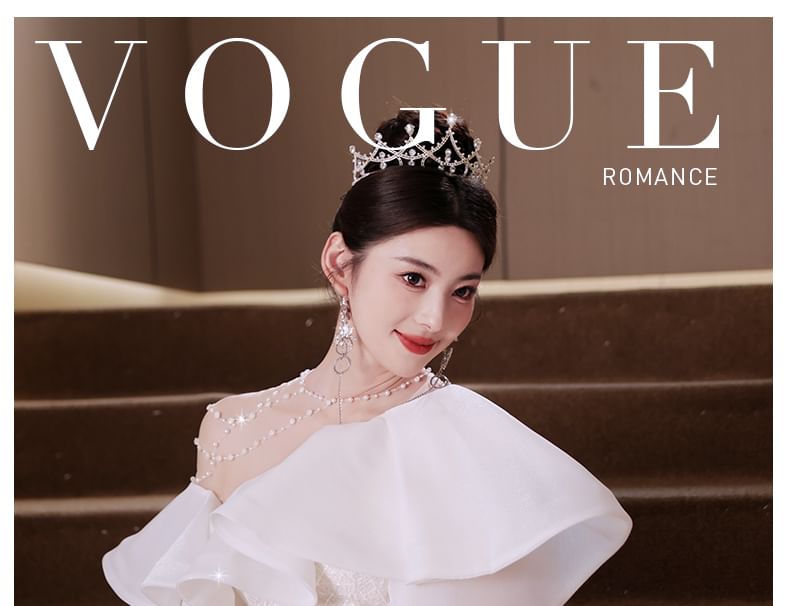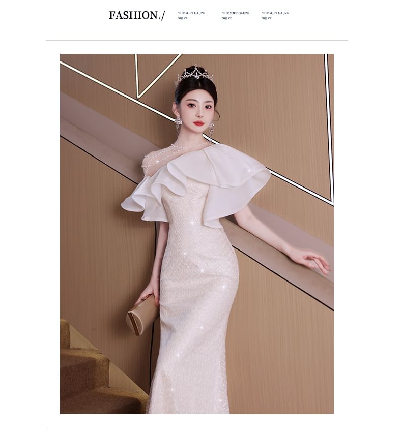 Short-Sleeve Ruffle Trim Beaded Sequin Mermaid Evening Gown