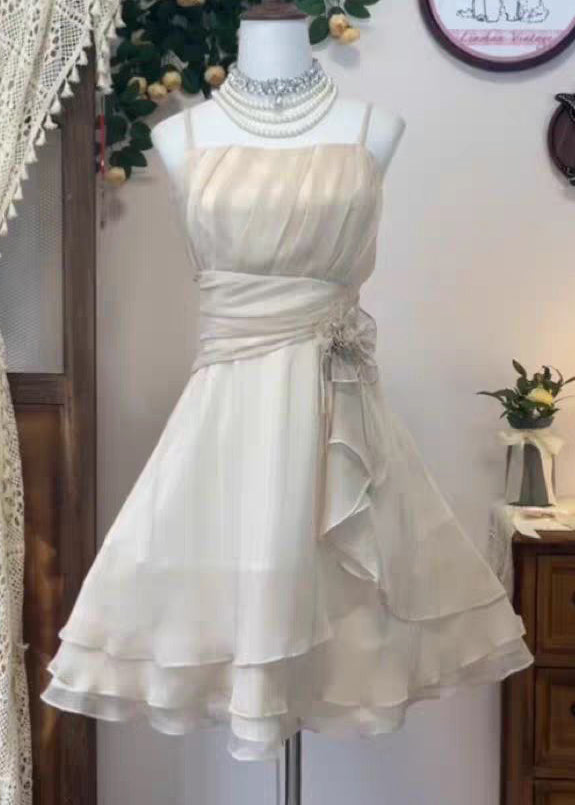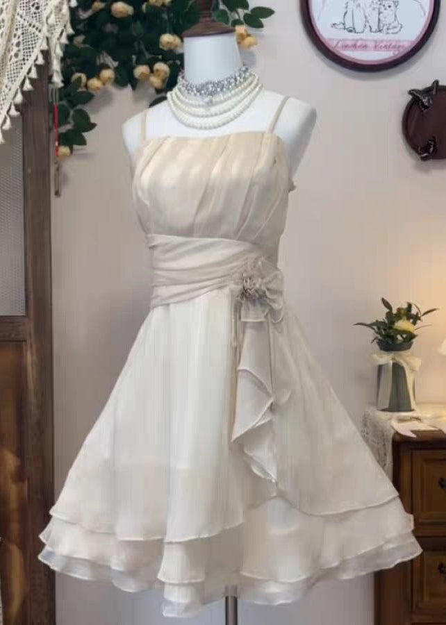Silk Dress Waist Strap Wrinkled Spaghetti High Elegant Pink