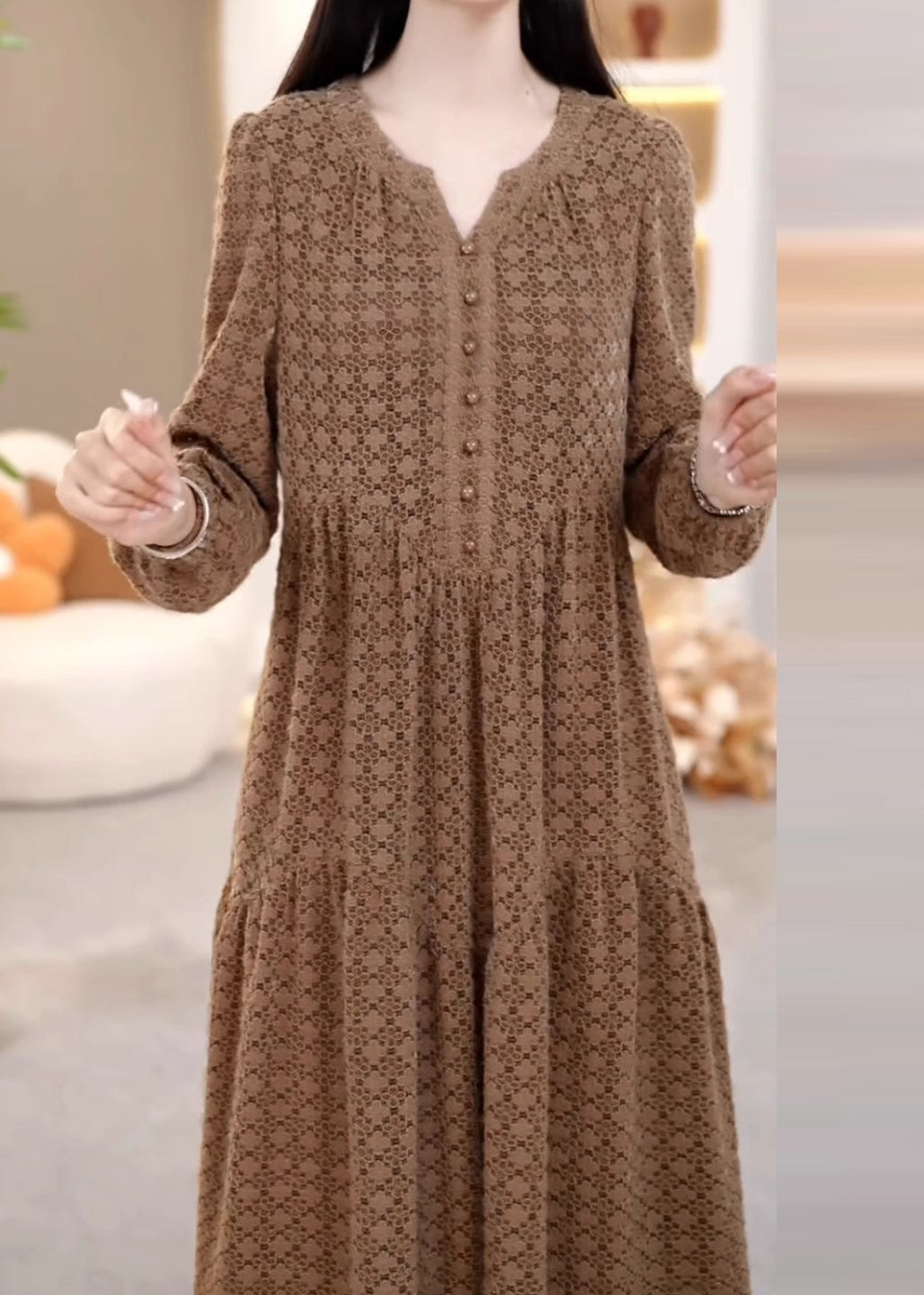 Experience luxury with our Women's Silk Velvet Maxi Dress for Spring, featuring a stunning patchwork design, V-neckline, and sophisticated button detailing. Delicately crafted to elevate your style, this dress is the perfect fusion of art and fashion.