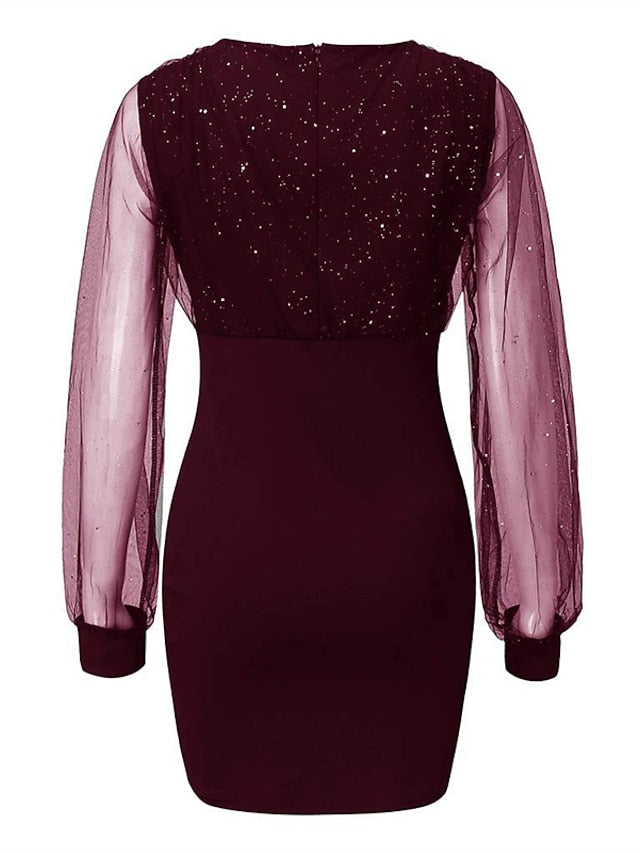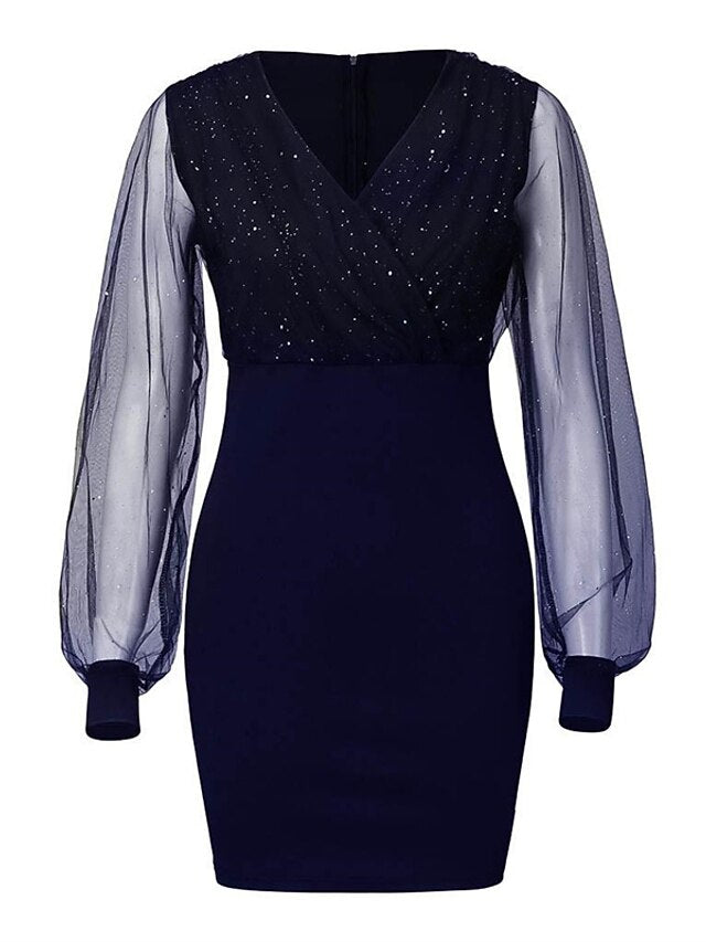 Dresses Type: Cocktail Dress, Semi Formal Dress, Sequin Dress, Black Dress, Sheath Dress, Formal Dresses, Gender: Women's, Fabric: Polyester, Design: Sequins, Mesh, Shimmer, Sparkly, Occasion: Cocktail Party, Evening Party, Homecoming Dress, Fall Dress, Style: Modern, Sexy Dress, Fit Type: Regular Fit, Dress Length Type: Mini Dress, Neckline: V Neck, Sleeve Length: Long Sleeve, Sleeve Type: Mesh Sleeve, Elasticity: Micro-elastic, Look After Me: Hand wash, Pattern: Pure Color, Season: Spring, Fall, Winter, Autumn,