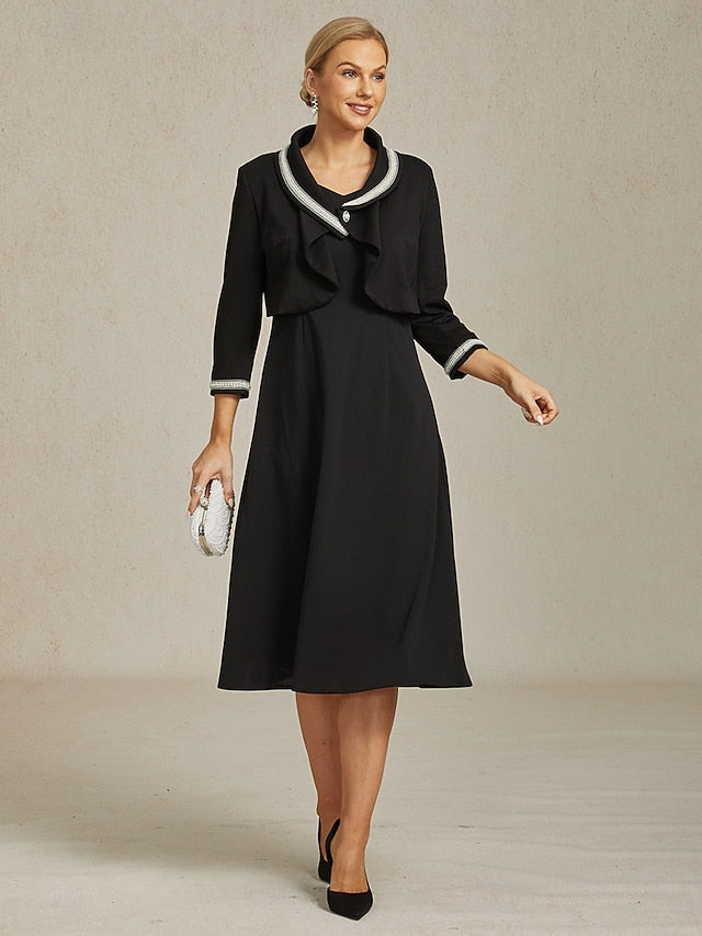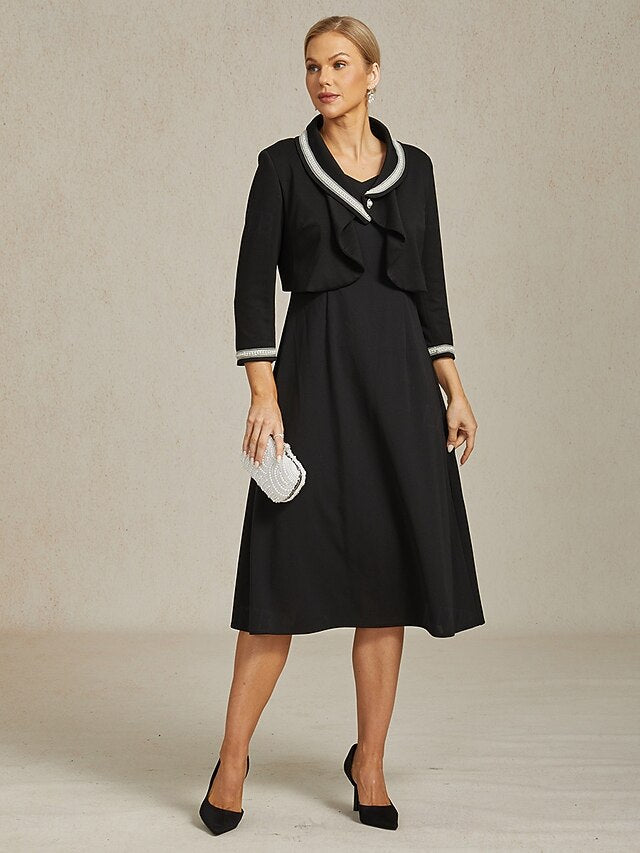 Women's Button Up Jacket Dressy Top Elegant 3/4 Length