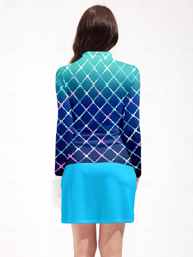 Women's Golf Polo Shirt Blue Long Sleeve Top Ladies Golf