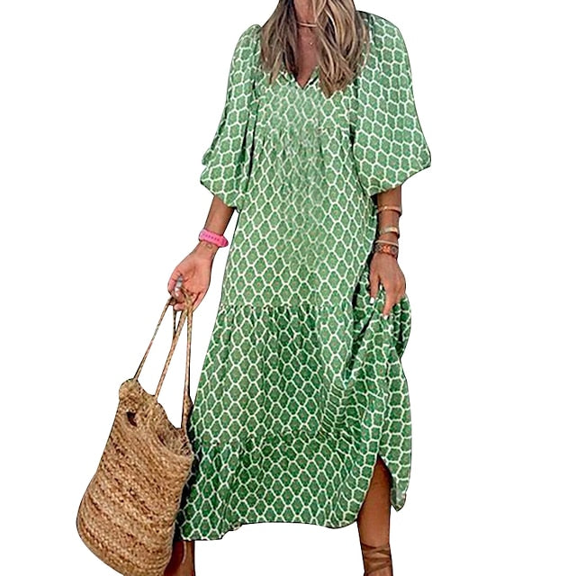 Women's Long Dress Boho Chic Dress Green 3/4 Length Sleeve