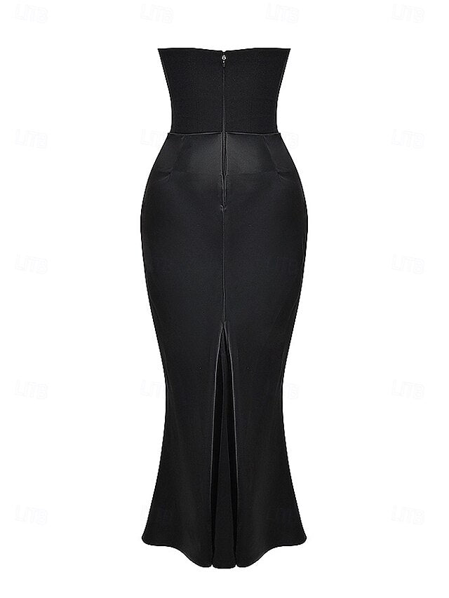 Dresses Type: Formal Dresses, Cocktail Dress, Corset Dress, Black Dress, Fabric: 75%Polyester +25%Cotton, Gender: Women's, Design: Cold Shoulder, Ruched, Occasion: Evening Party, Tea Party, Party, Style: Fashion, Modern, Fit Type: Slim, Dress Length Type: Long Dress Maxi Dress, Neckline: Strapless, Sleeve Length: Sleeveless, Elasticity: Micro-elastic, Look After Me: Hand wash, Machine wash, Pattern: Plain, Season: Summer,